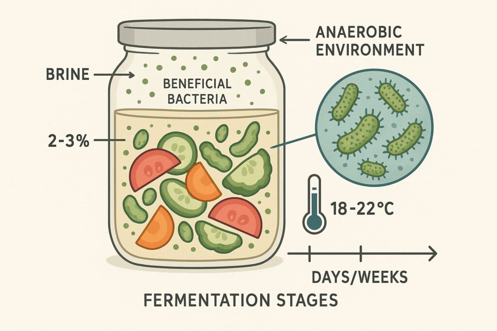 The biological process behind fermentation harnesses beneficial bacteria, primarily lactobacilli, to create acidic environments that preserve food while developing complex flavors. These beneficial microorganisms consume sugars in vegetables, producing lactic acid that drops pH levels below 4.0, creating conditions where harmful bacteria cannot survive. The process essentially turns your kitchen into a controlled ecosystem where good bacteria outcompete potentially dangerous ones.
